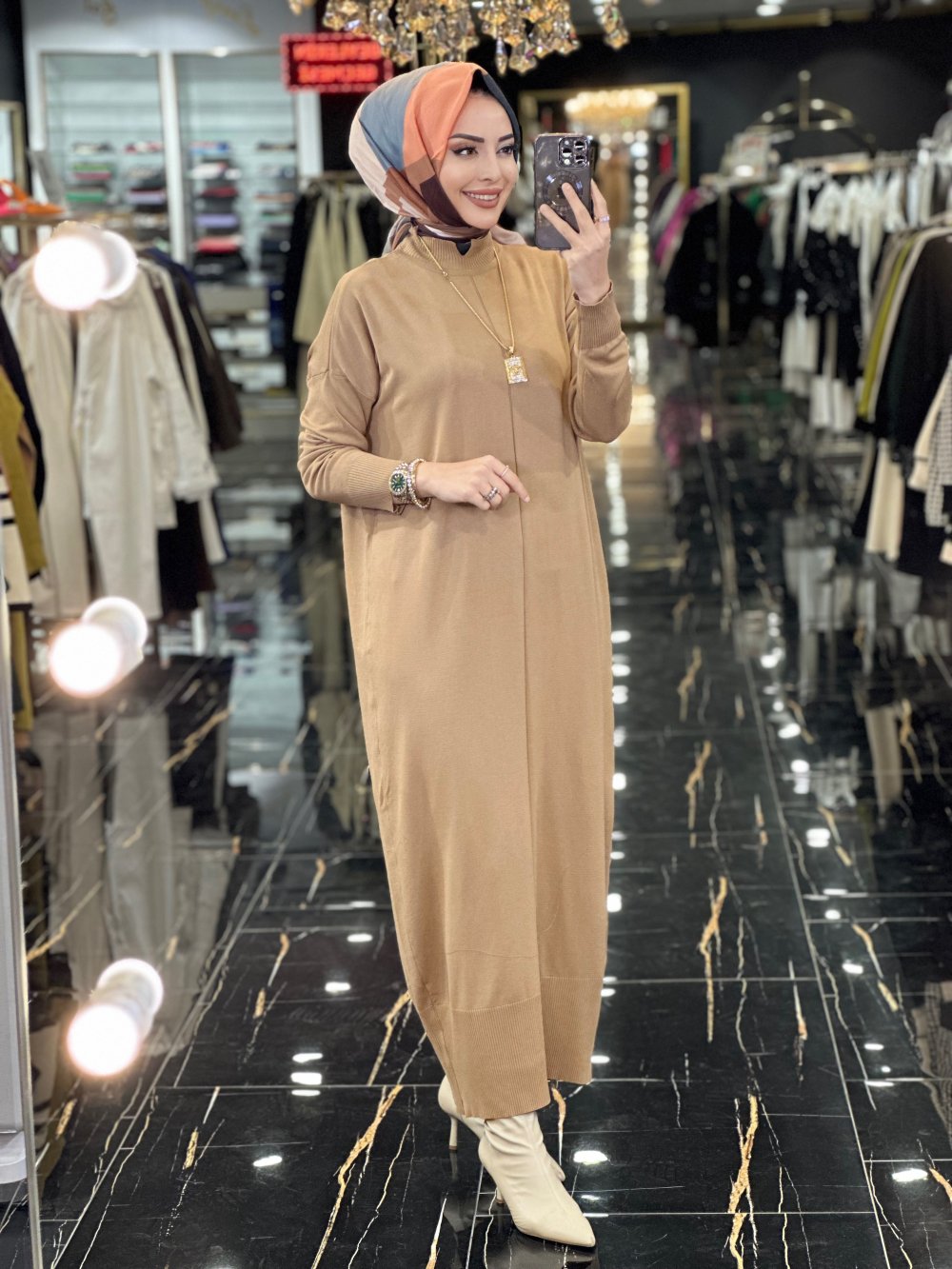 7017 Öpücük Yaka Vanezia Elbise Latte