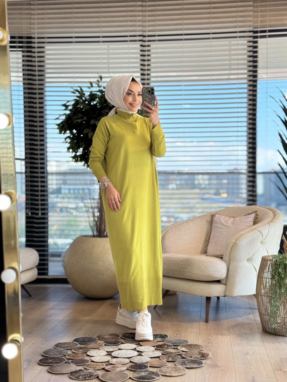 7025 Patı Fermuarlı Vanezia Elbise Yağ