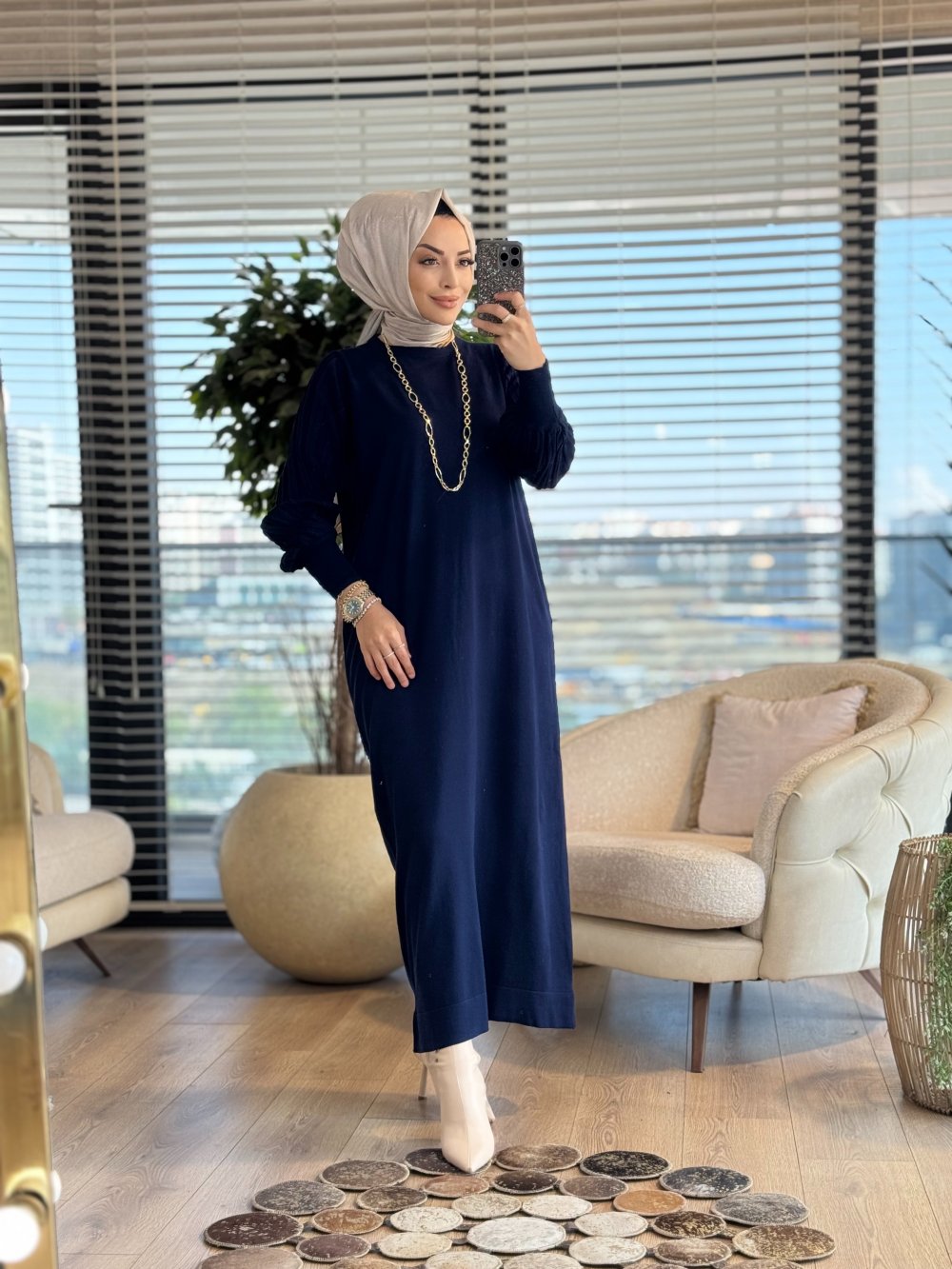 7046 Kolları Piliseli Simli Vanezia Elbise Lacivert