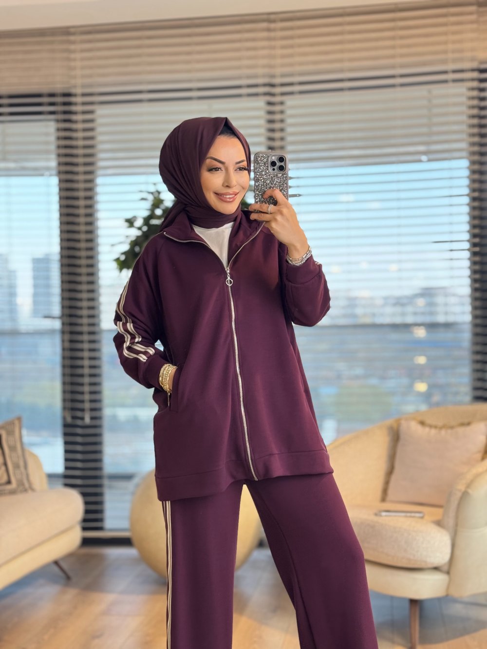 73004 Kol Ve Pantolon Yanı İki Şeritli Takım Bordo