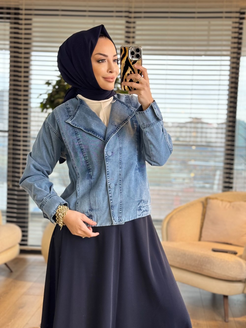 7440 Kot Ön Parça Detaylı Yakasız Ceket Mavi