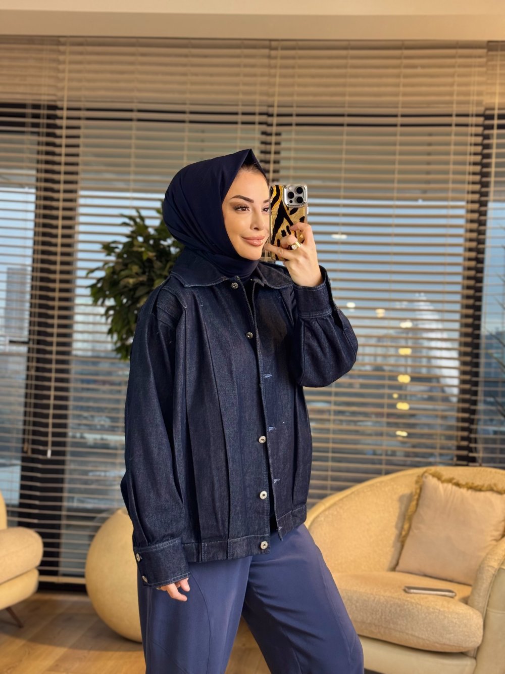 7458 Omuzları Pile Detaylı Kot Ceket Lacivert