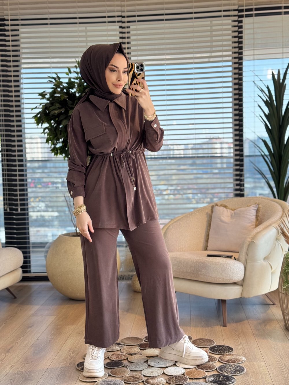 7459 Cepli Beli Büzgülü Takım Kahve