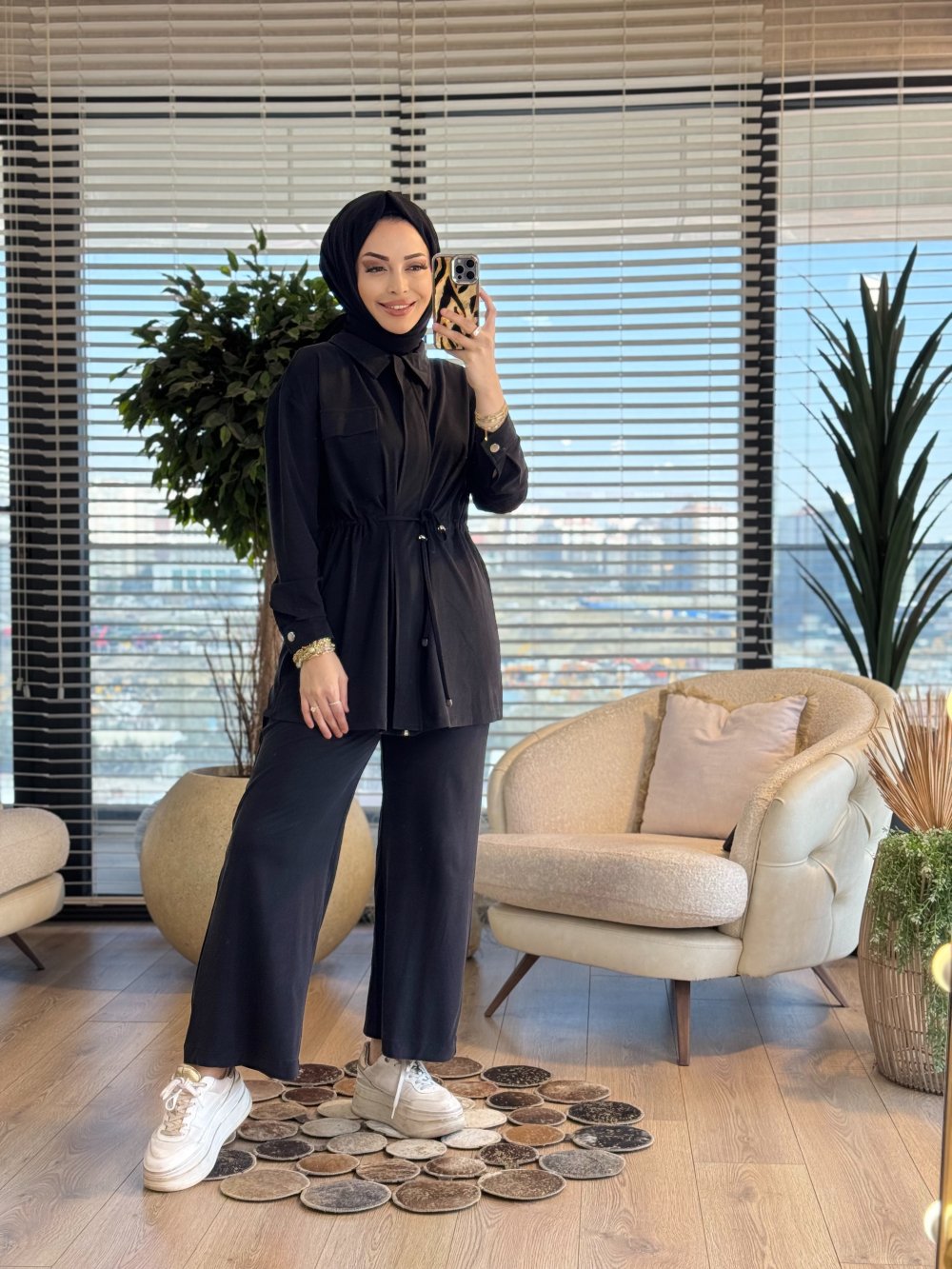 7459 Cepli Beli Büzgülü Takım Siyah