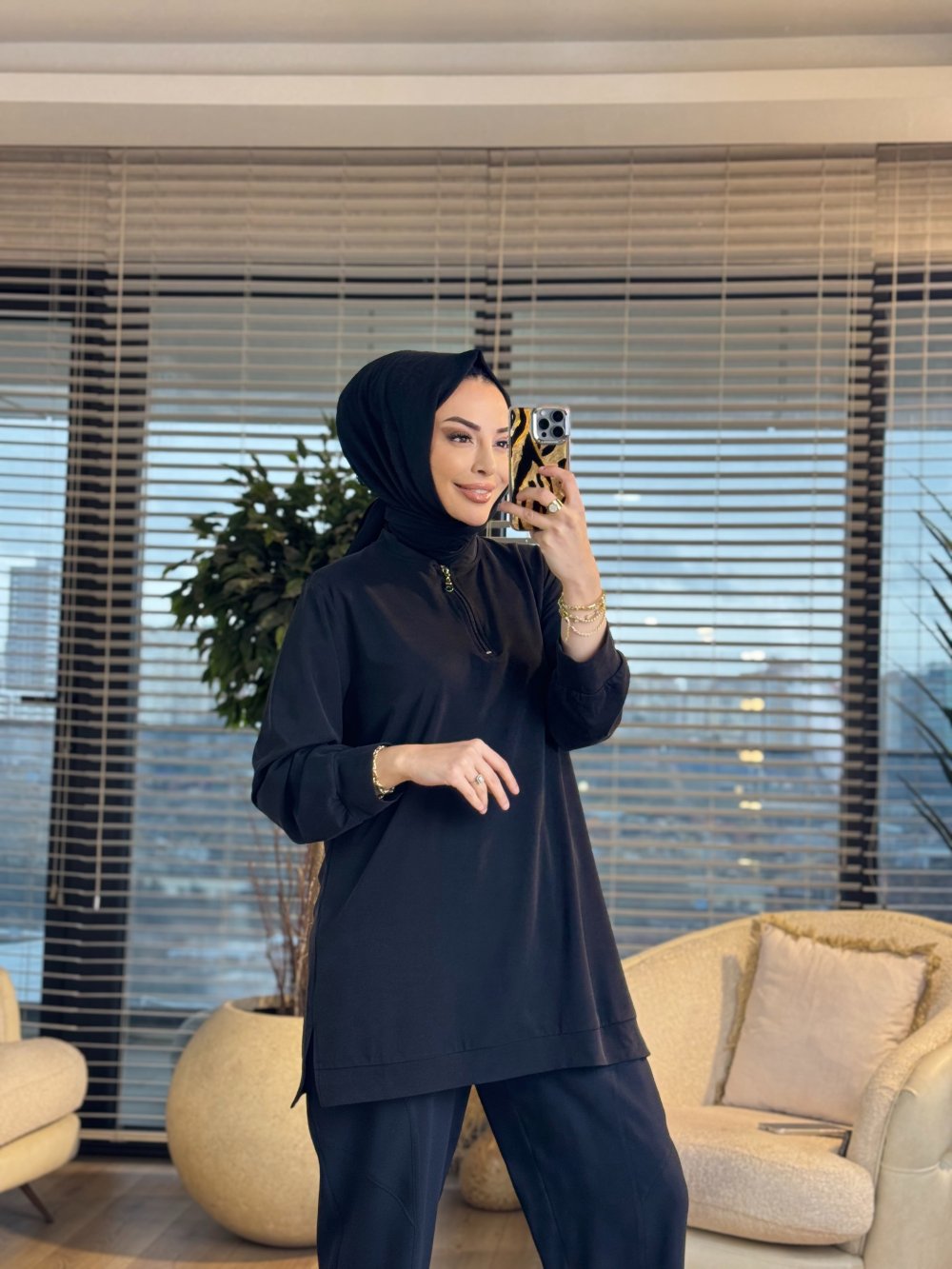 7474 Oysho Patı Fermuarlı Tunik Siyah