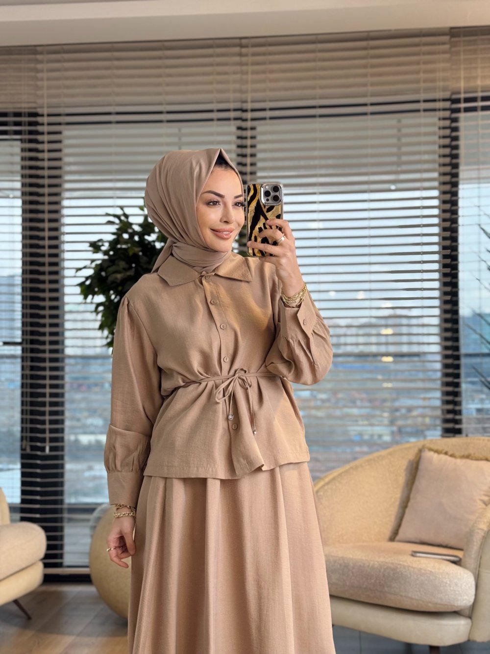 7477 Klasik Takım Bej