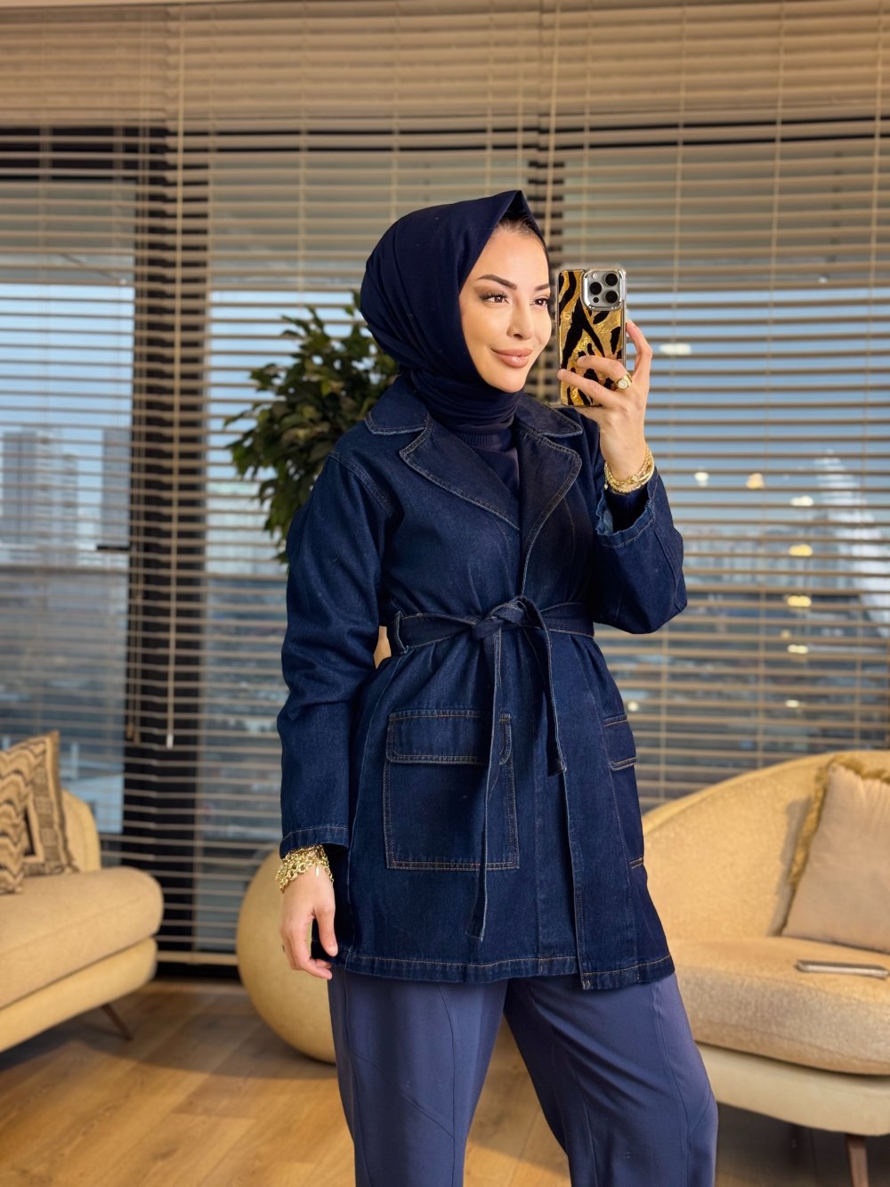 7507 Şal Dügmesiz Kot Trenç Lacivert