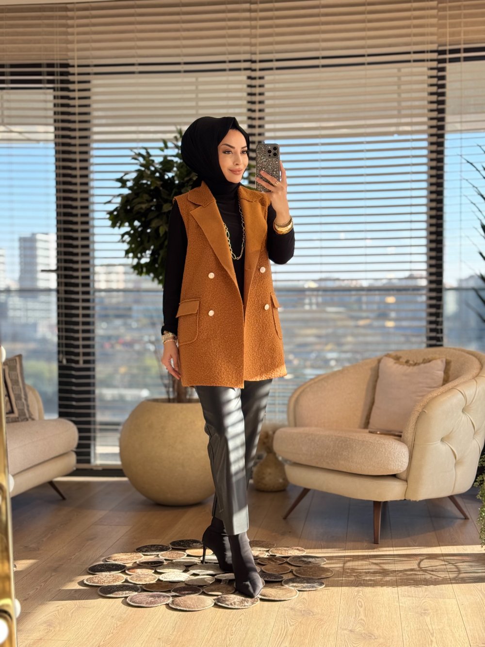 7889 Bukle Dört Düğmeli Yelek Kiremit