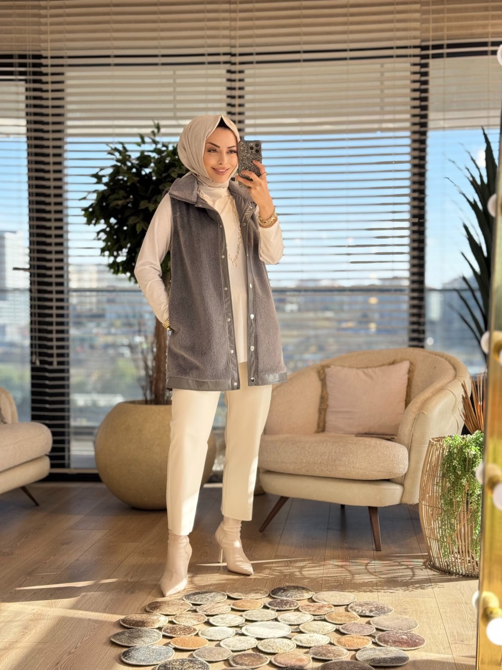 9280 Ön Çıçıtlı Kürk Yelek Antrasit