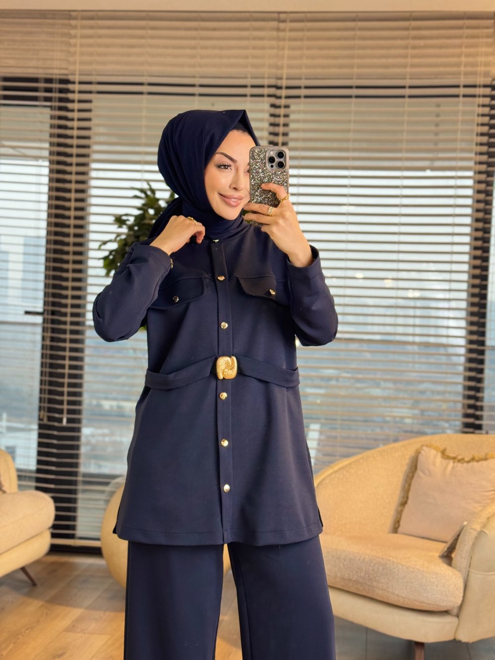 9830 Ön İki Cepli Beli Kemerli Takım Lacivert