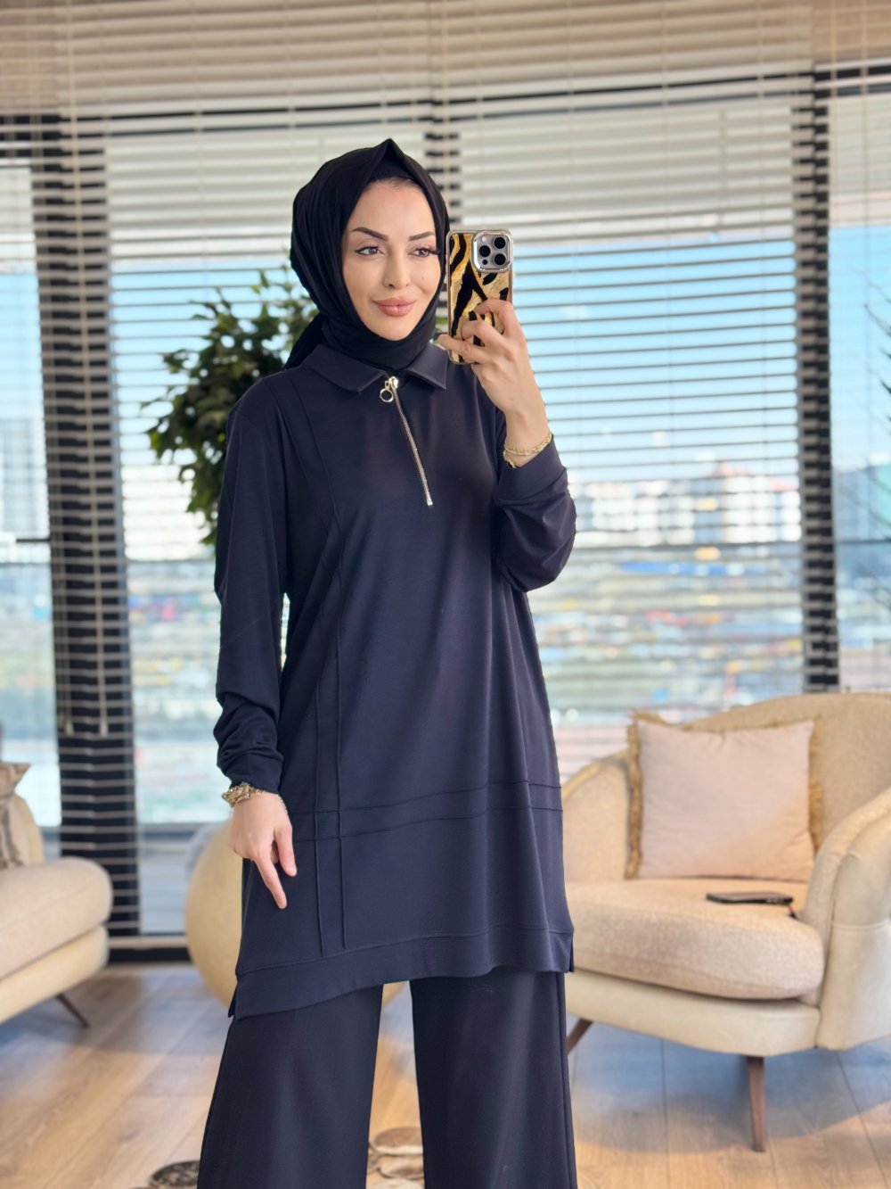 9910 Önü Kordon Biye Detaylı Tunik Siyah