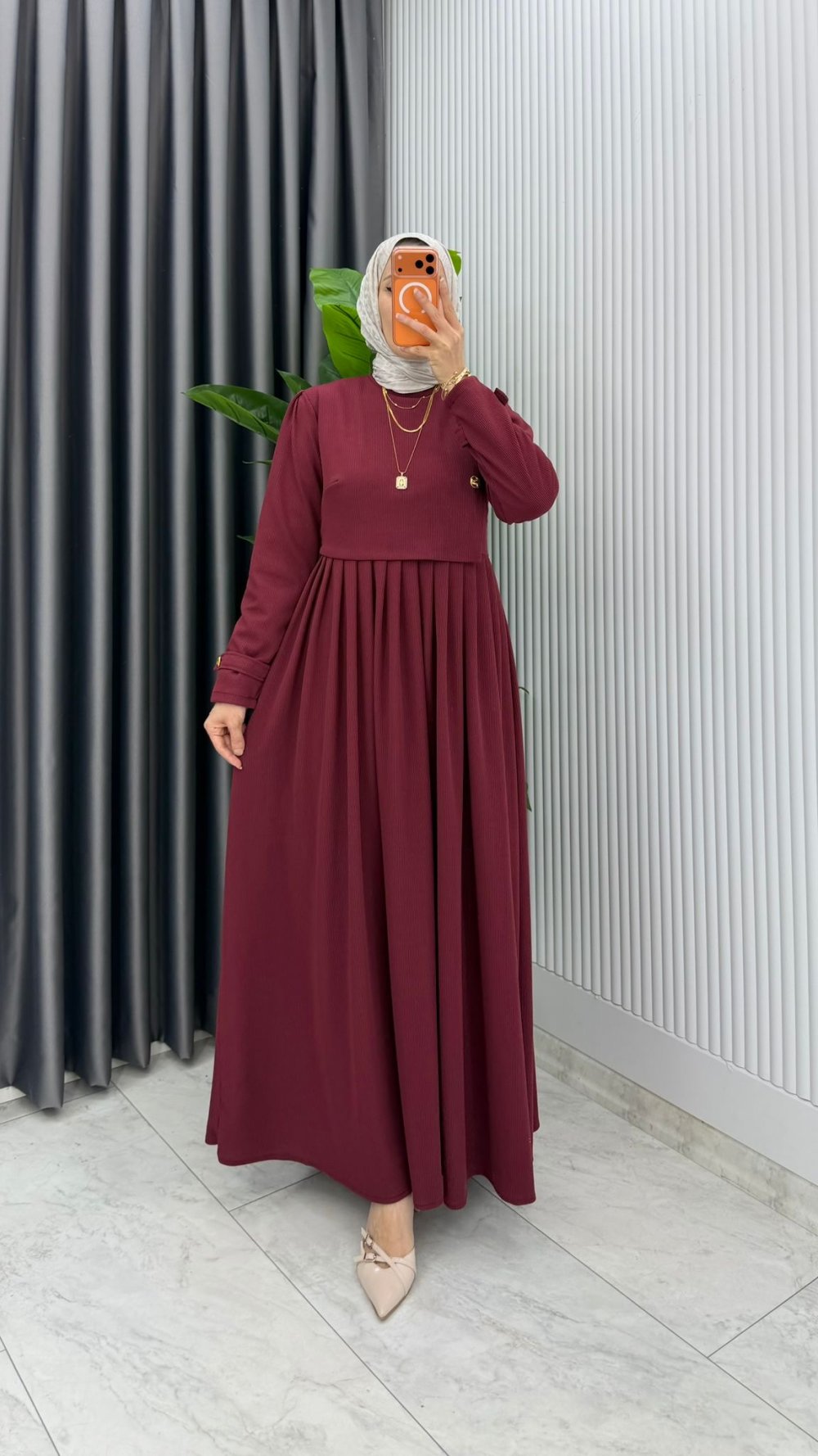 Bordo Burgu Sinem Elbise Tesettür Giyim