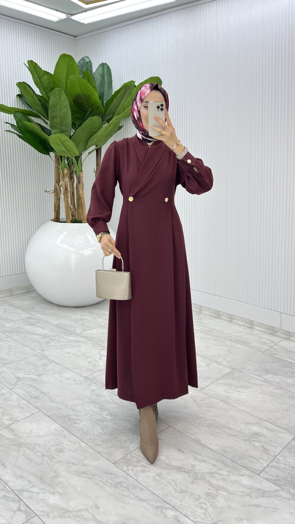 Bordo Semra Ferace Elbise Tesettür Giyim