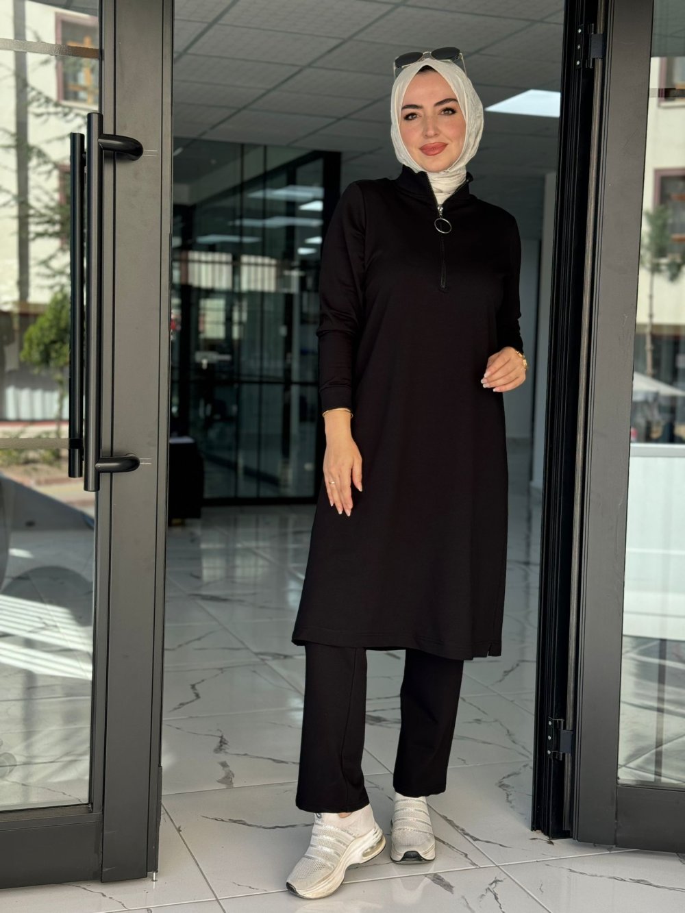 Kumaşı pamuklu iki ipliktir. Pantolon beli lastiklidir. Rahat kalıptır.