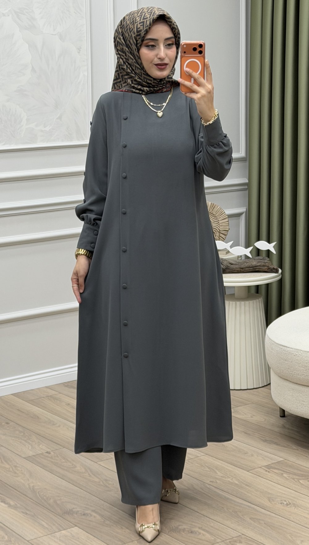Rahatlık ve şıklığı bir araya getiren Çiğdem Takım,sade ama zarif duruşuyla günlük kombinlerinizi güçlendiriyor. Yumuşak kumaşı ve esnek yapısı sayesinde gün boyu konfor sunarken, modern kesimiyle stil sahibi bir görünüm yaratır.