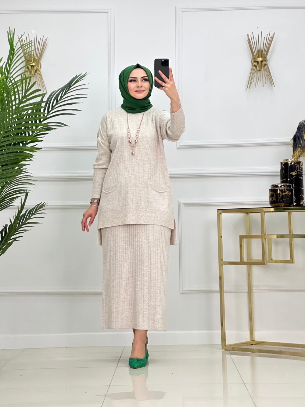 DEMET ETEKLİ TRİKO TAKIM-BEJ