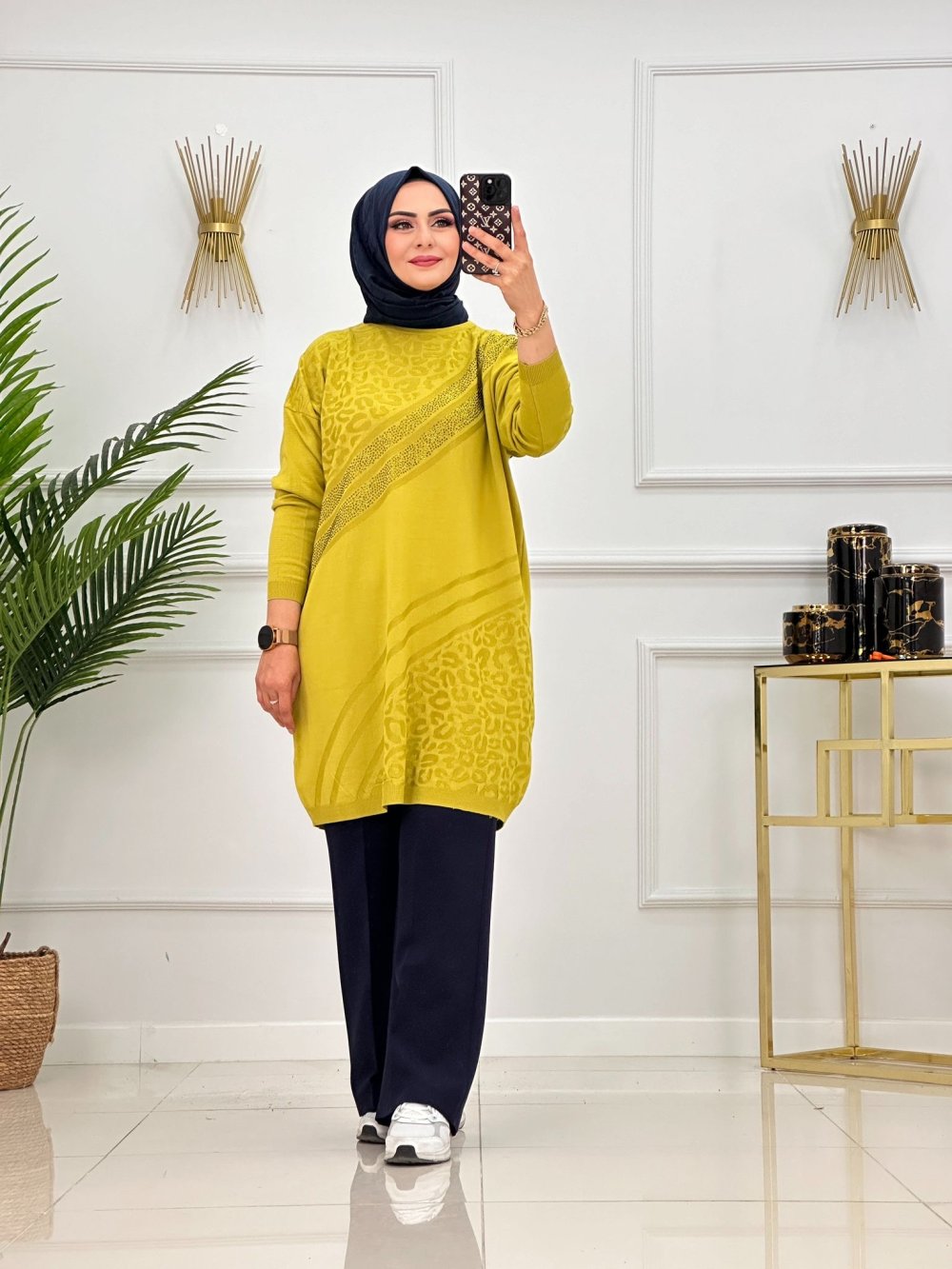 DİLAN TAŞLI TUNİK-YAĞ YEŞİLİ
