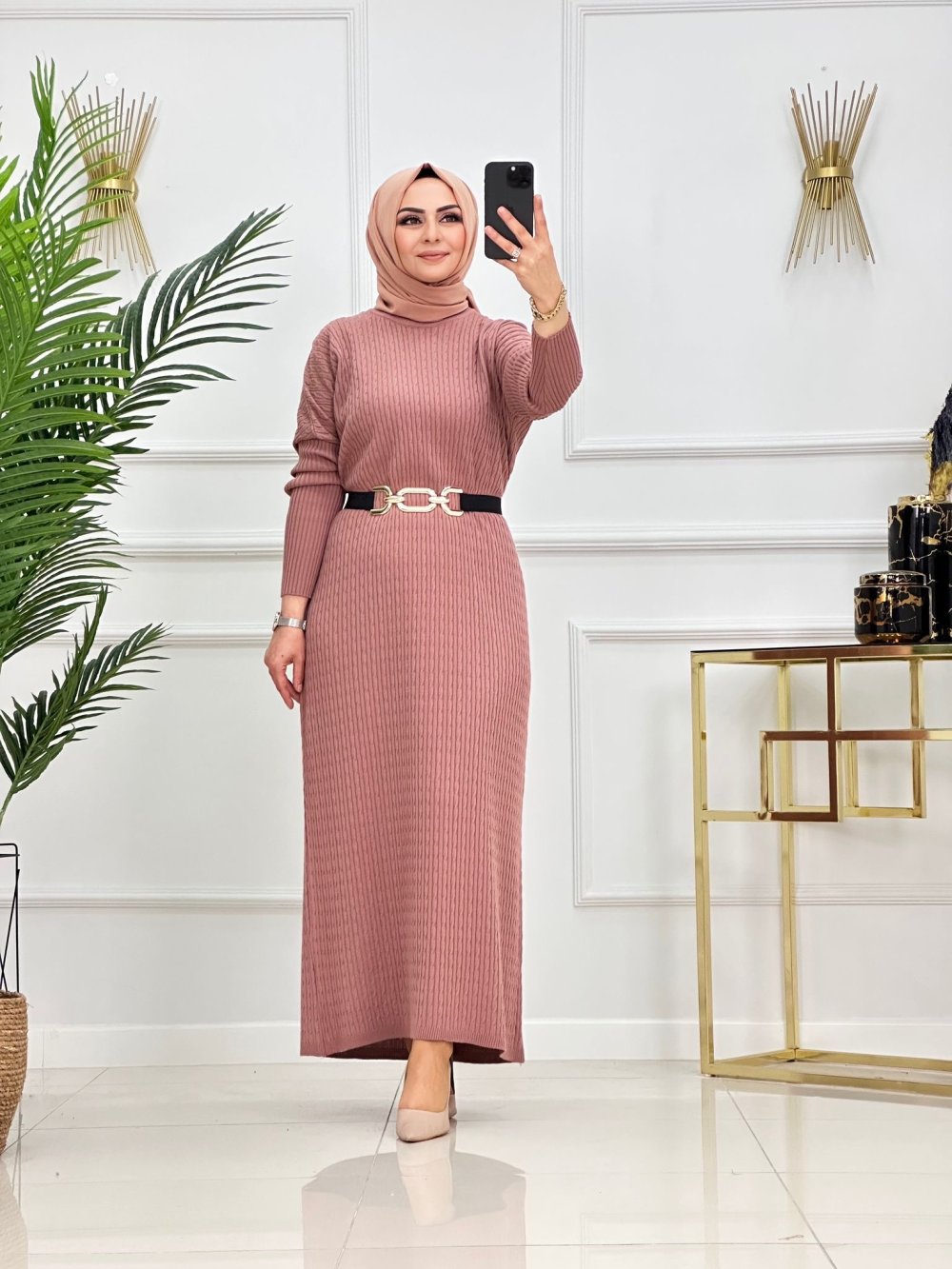 ESİLA TRİKO ELBİSE-PUDRA