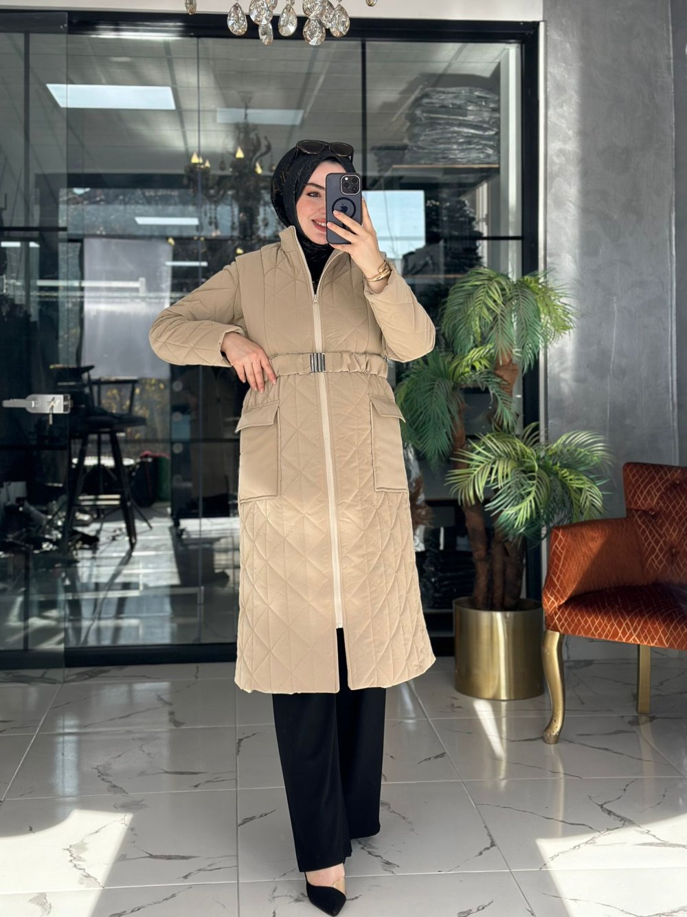 Manken 170 cm boyunda 68 kilodur. 3 beden giymiştir.