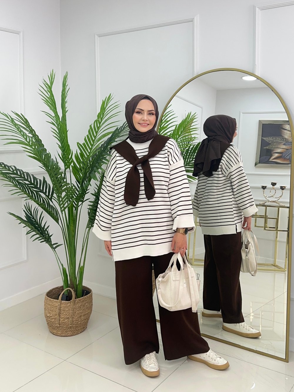 FULARLI TRİKO TAKIM - ACI KAHVE