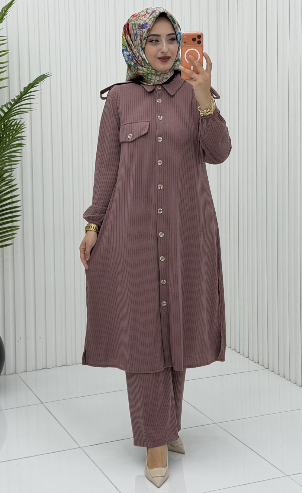 Funda Takım,hem iş hem de günlük hayatınızda rahatlıkla tercih edebileceğiniz çok yönlü bir parçadır. Şıklığı konforla buluşturan bu tasarım, sezonun en gözde modellerinden biri olacak