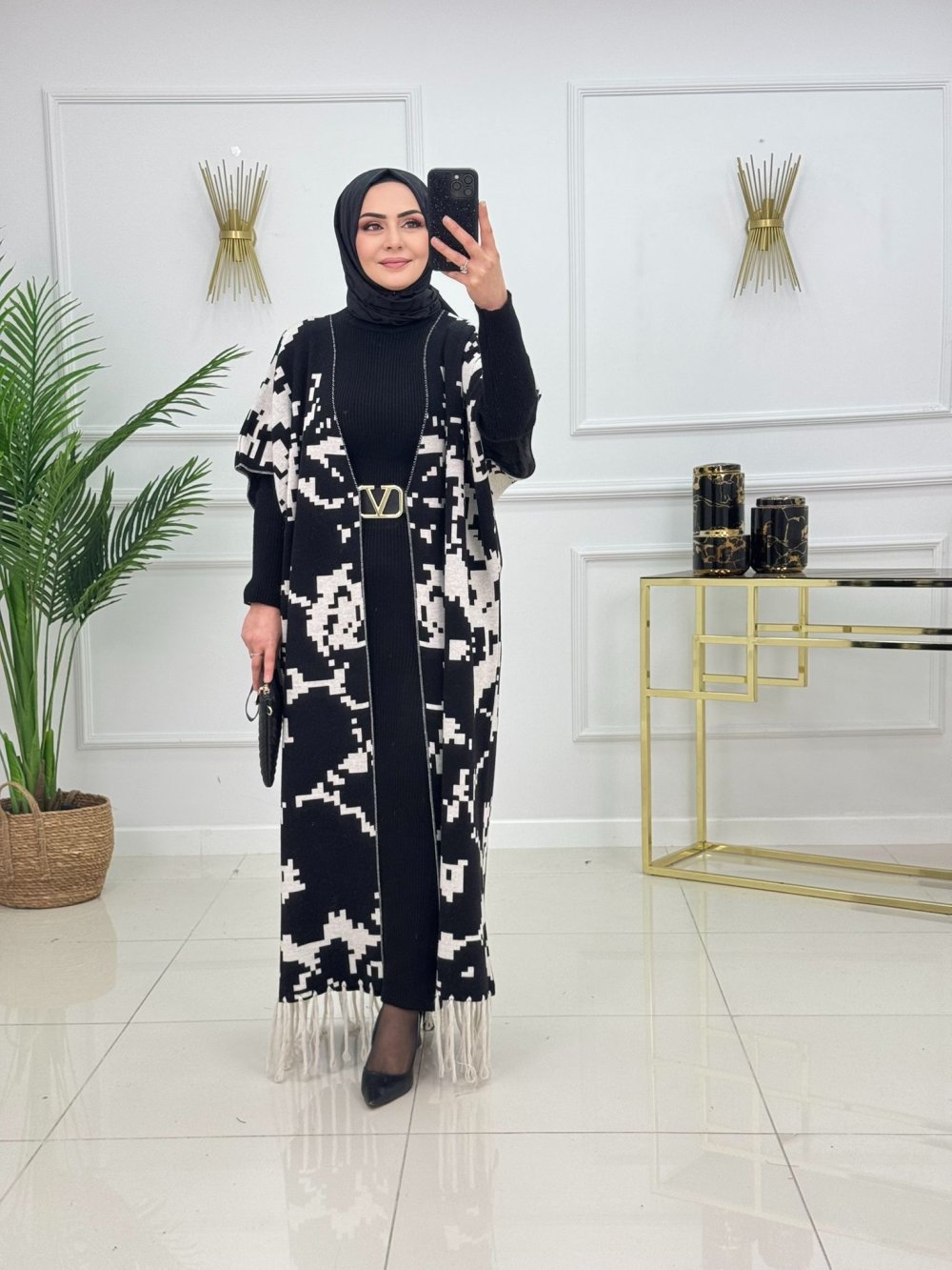 ?Ürün uzun kollu triko elbise ve kimono yelek olarak iki parçadan oluşmaktadır