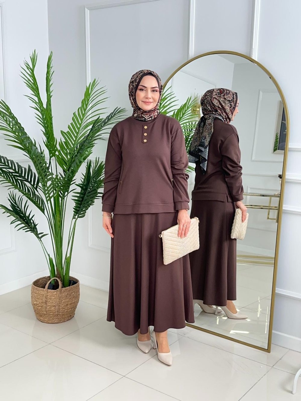 GÜLCAN ETEKLİ TAKIM - KAHVERENGİ