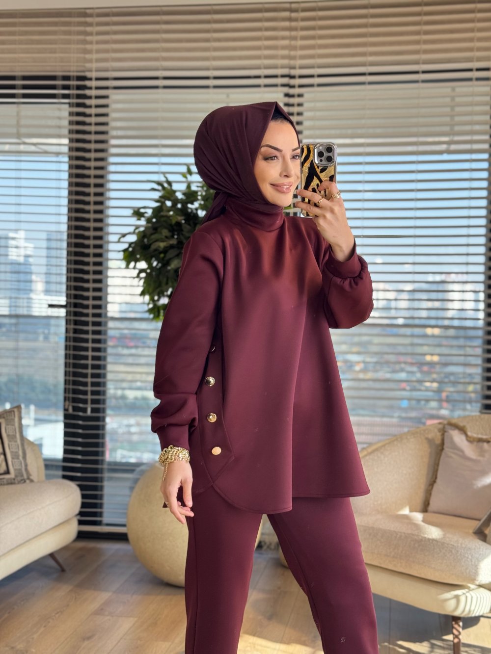 HWN6260 Yanları Düğme Detaylı Takım Bordo