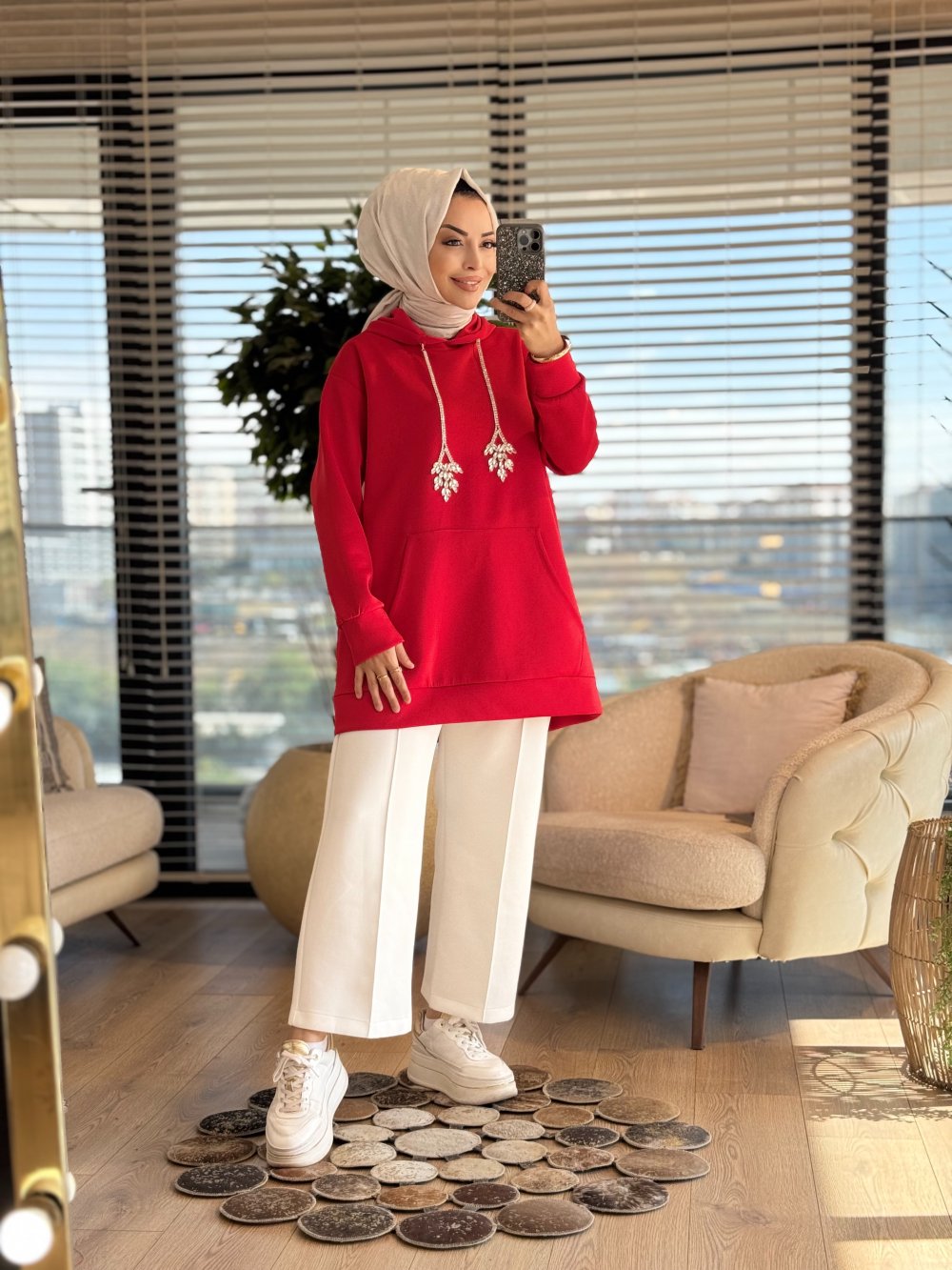 HWN9020 Maraya Kanguru Cepli Sweat Kırmızı