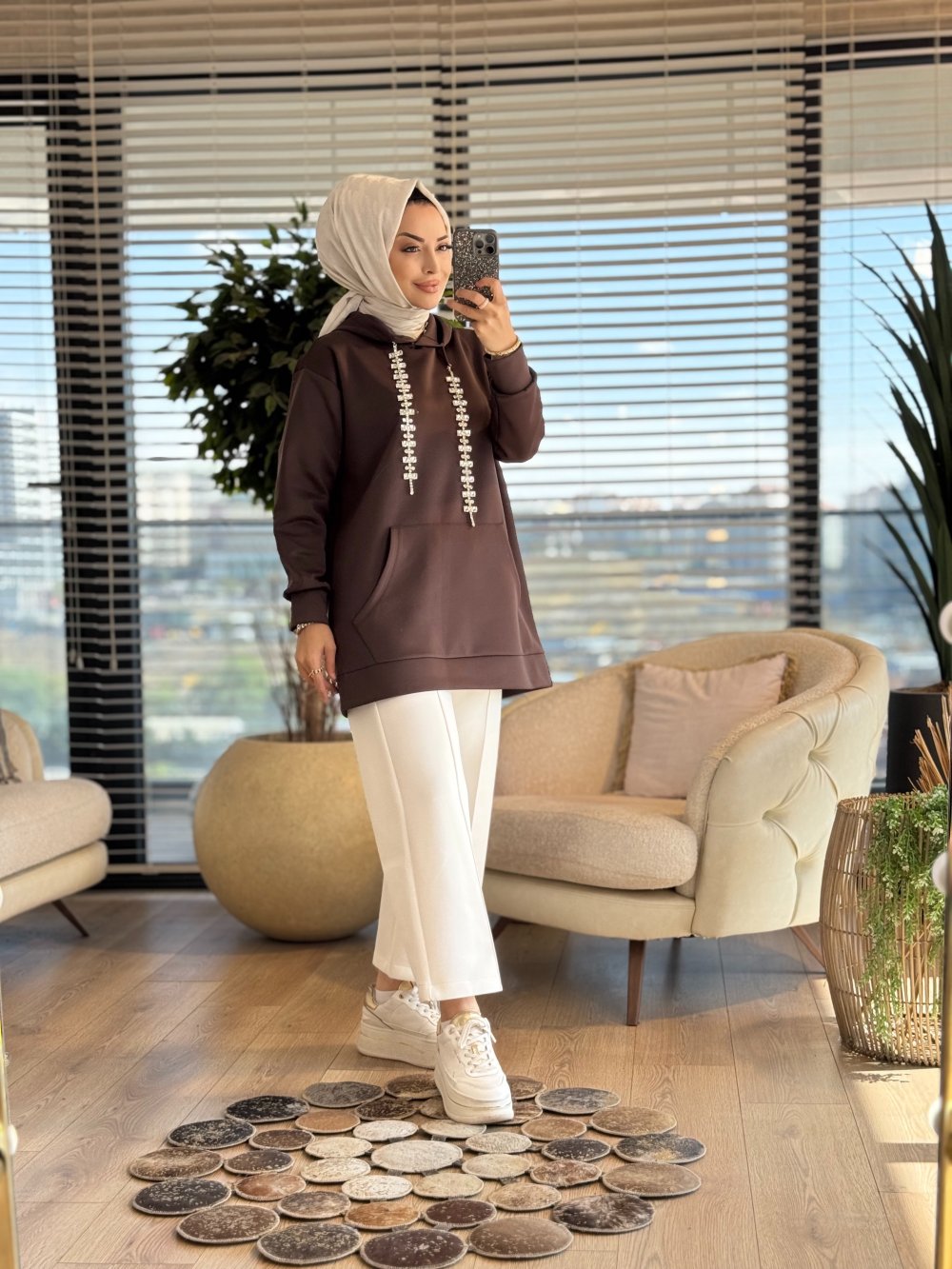 HWN9021 Parla Kanguru Cepli Sweat Kahve