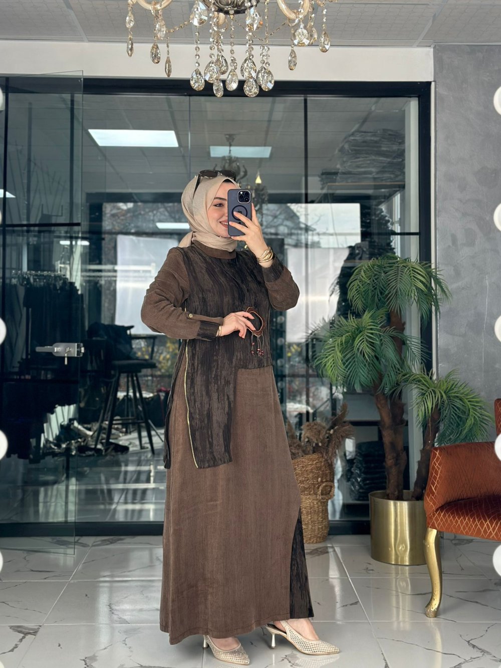 Işık Elbise Kahverengi