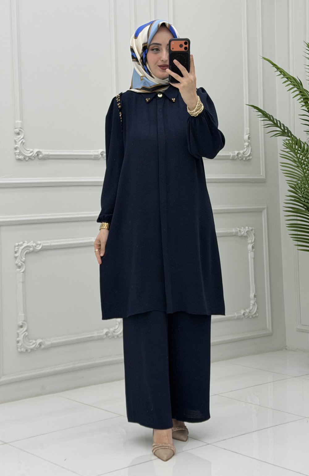 Işıltı  Takım, hem iş hem de günlük hayatınızda rahatlıkla tercih edebileceğiniz çok yönlü bir parçadır. Şıklığı konforla buluşturan bu tasarım, sezonun en gözde modellerinden biri olacak!