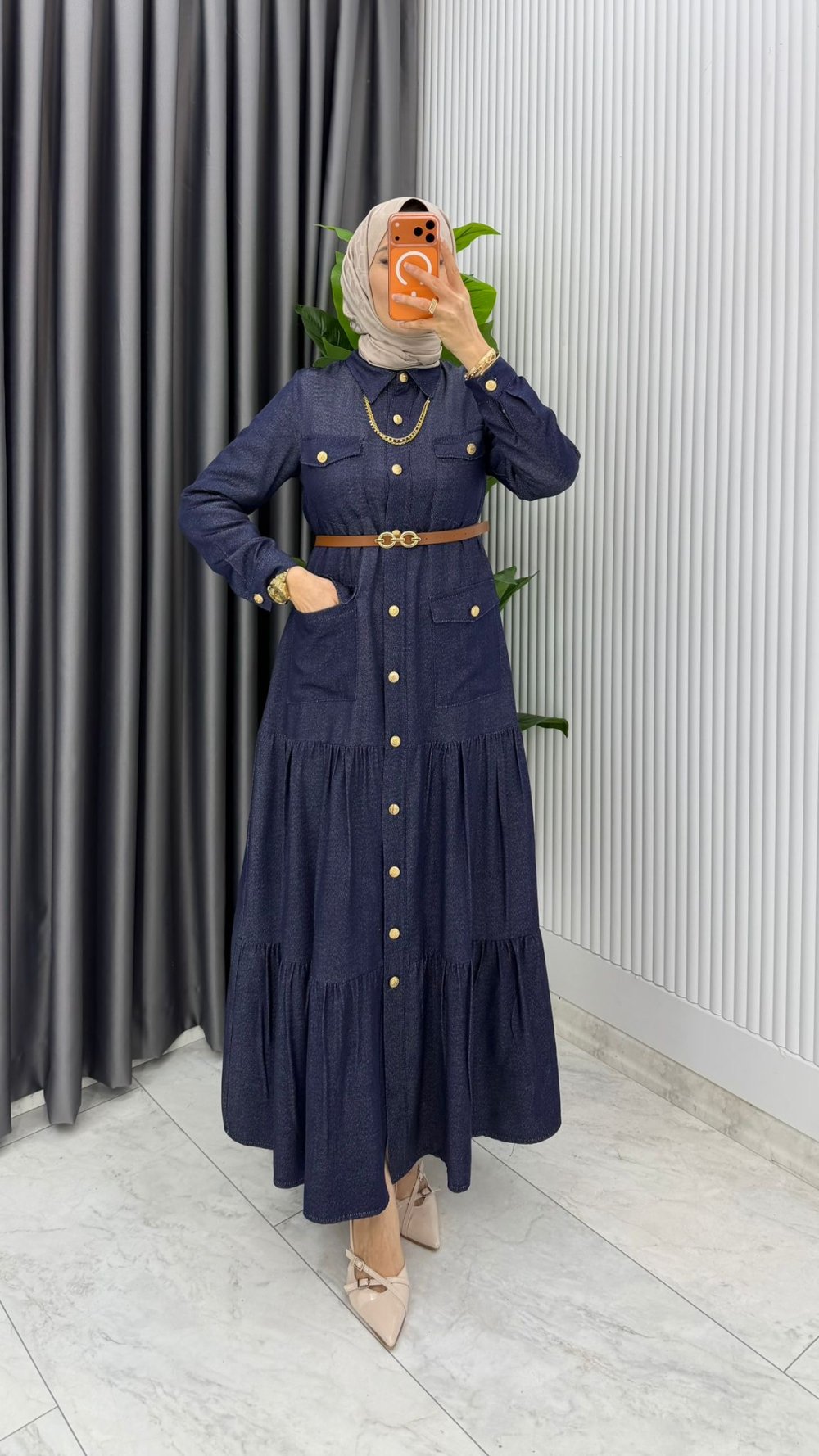 Lacivert Kemerli Eslem Kot Elbise Tesettür Giyim