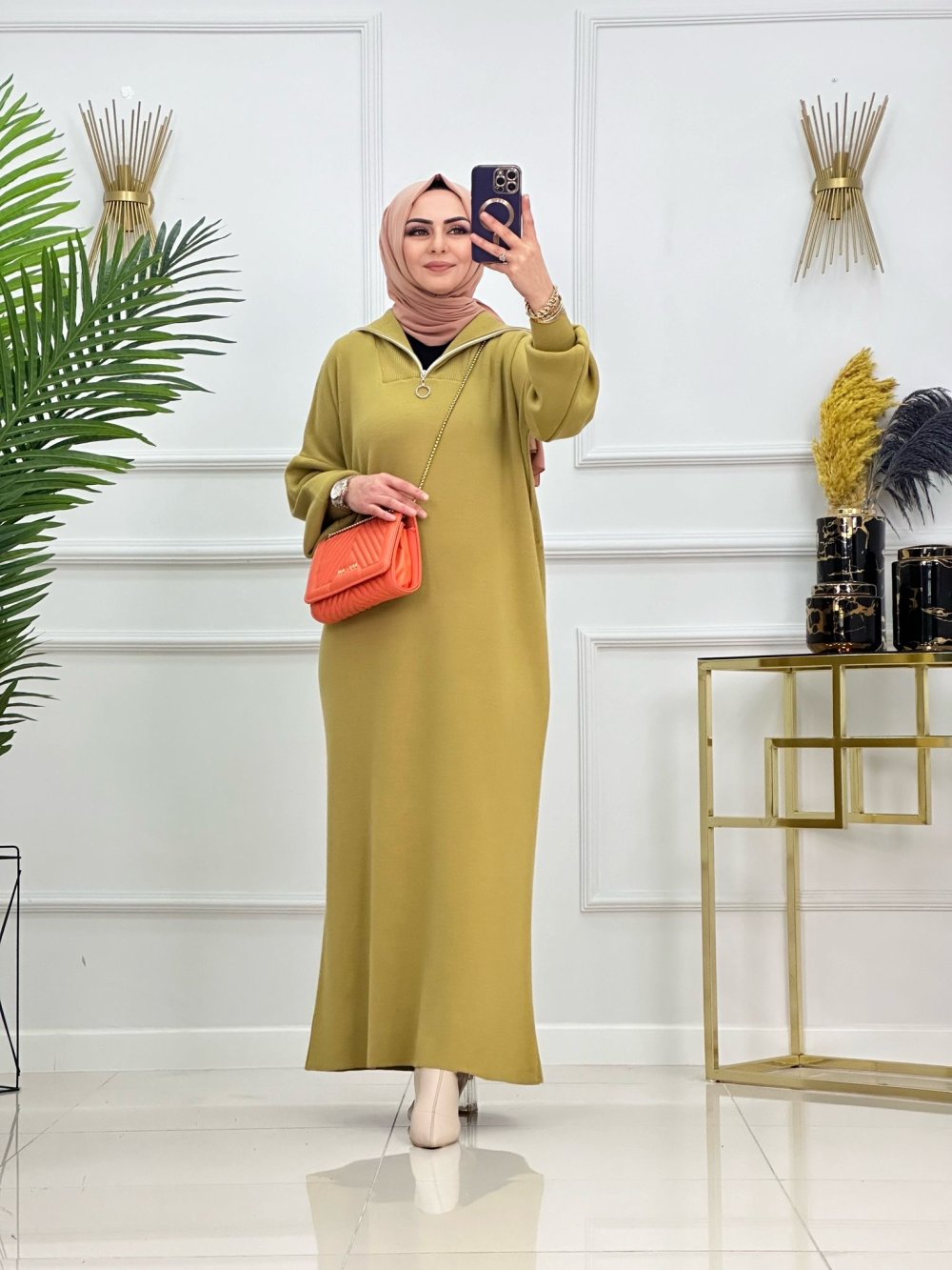 LARA TRİKO ELBİSE-YAĞ YEŞİLİ