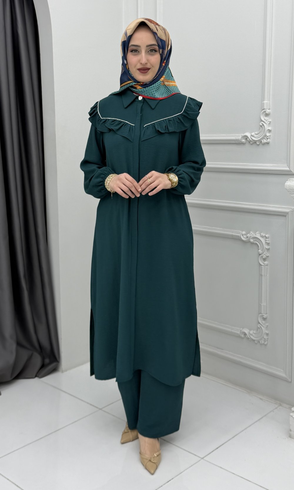 Rahatlık ve şıklığı bir araya getiren Liva Takım , sade ama zarif duruşuyla günlük kombinlerinizi güçlendiriyor. Yumuşak kumaşı ve esnek yapısı sayesinde gün boyu konfor sunarken, modern kesimiyle stil sahibi bir görünüm yaratır. rengin sofistike etkisi, her ortamda şıklığı yakalamanızı sağlar.