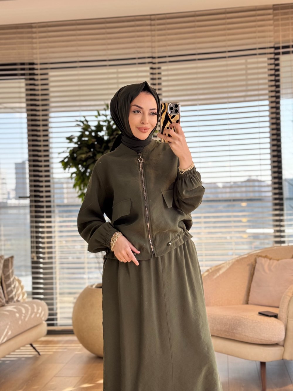 LYL105 Öykü Ceket Etek Takım Haki