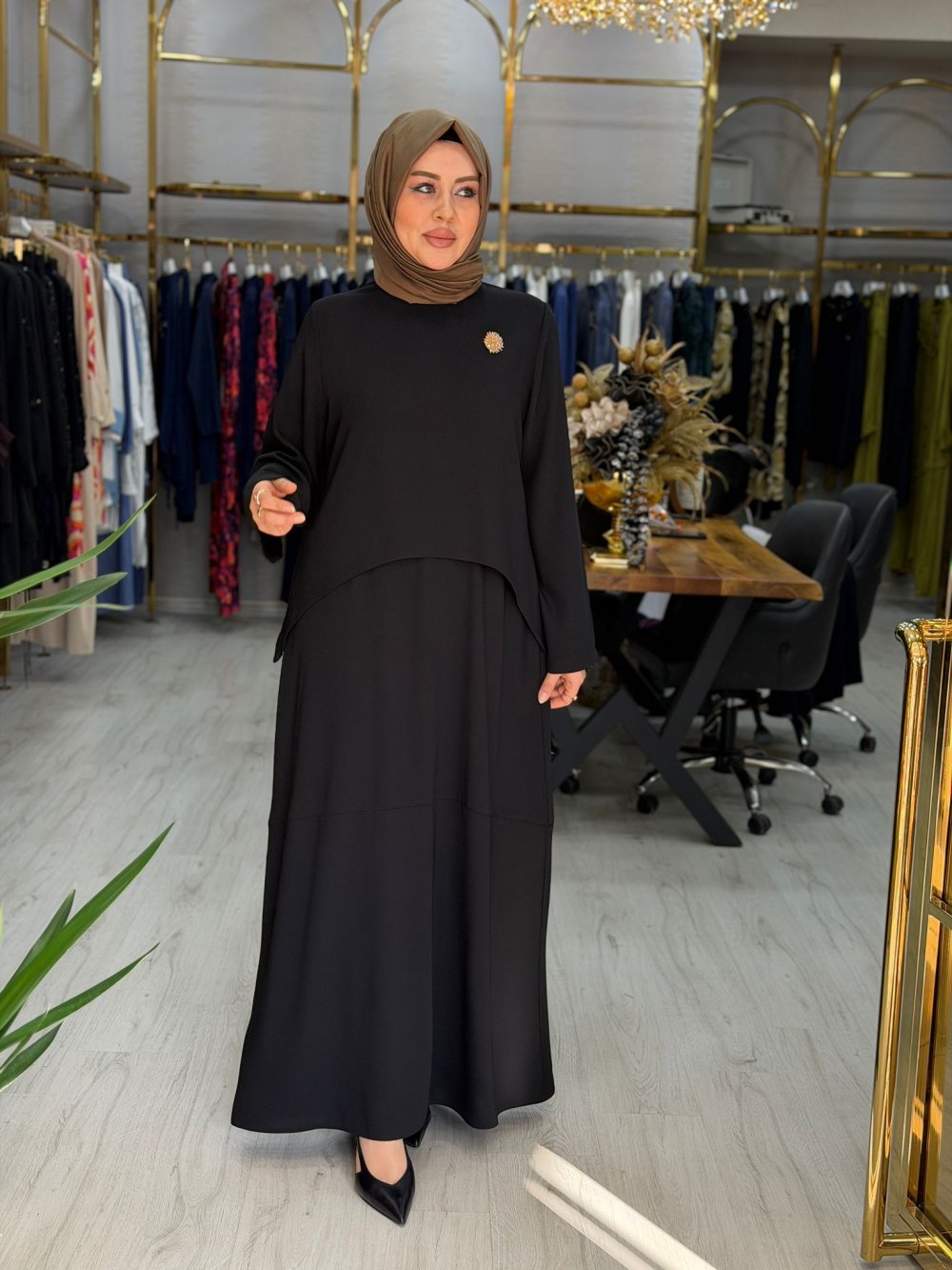 Kumaşı kreptir. Arkası yarım fermuarlıdır.