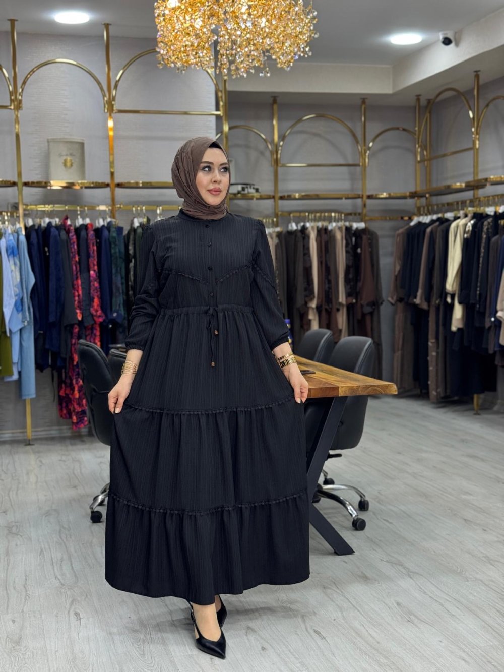 Kumaşı krinkıl kumaştır. Belden iplidir. Kol uçları lastiklidir. Önü yarım düğmelidir.