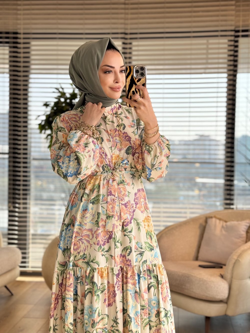 MRW1740 Desenli Elbise Yeşil