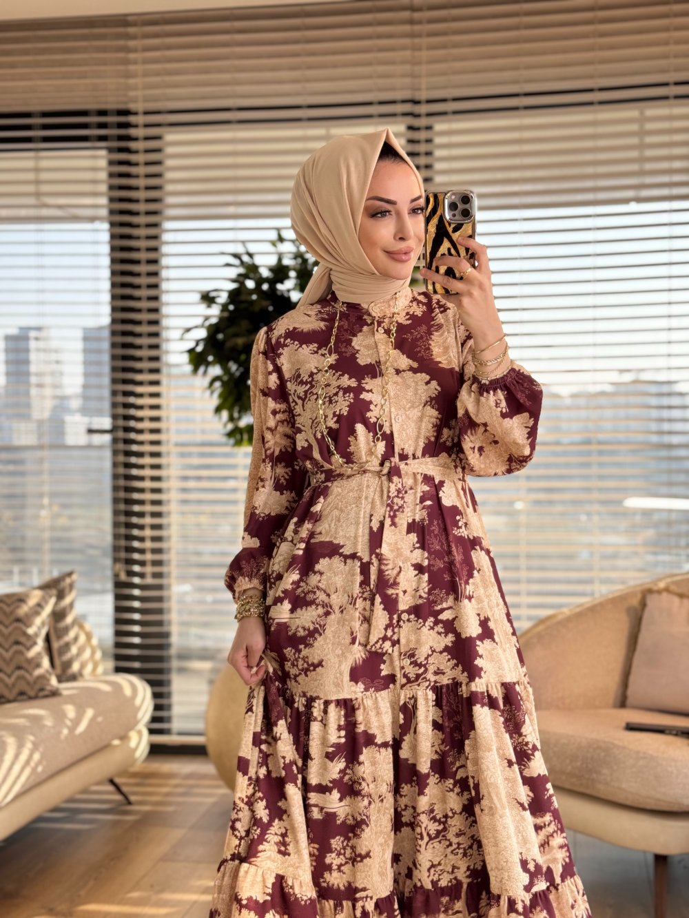 MRW1750 Desenli Elbise Bordo