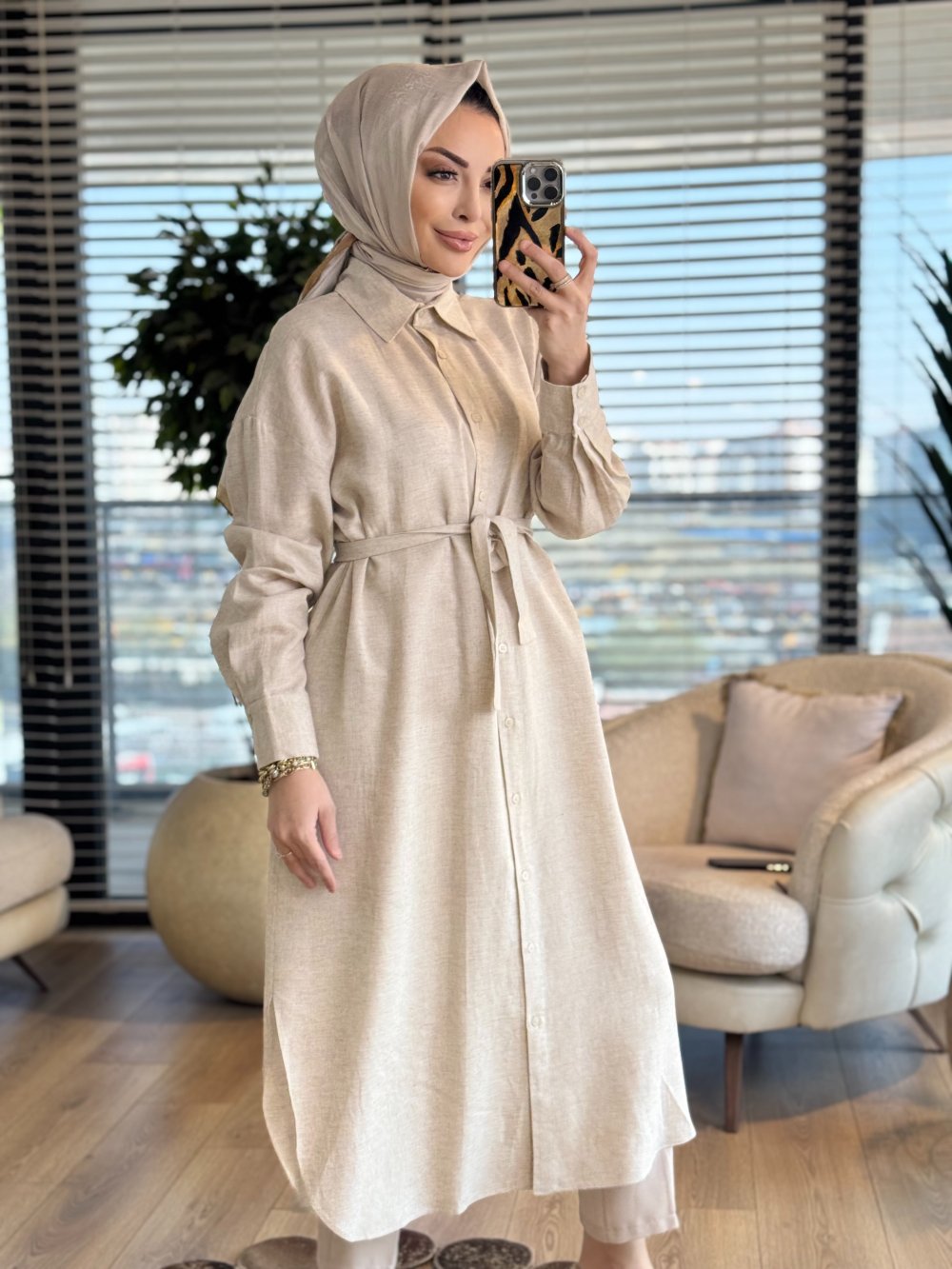 MRW1811 Uzun Keten Gömlek Taş