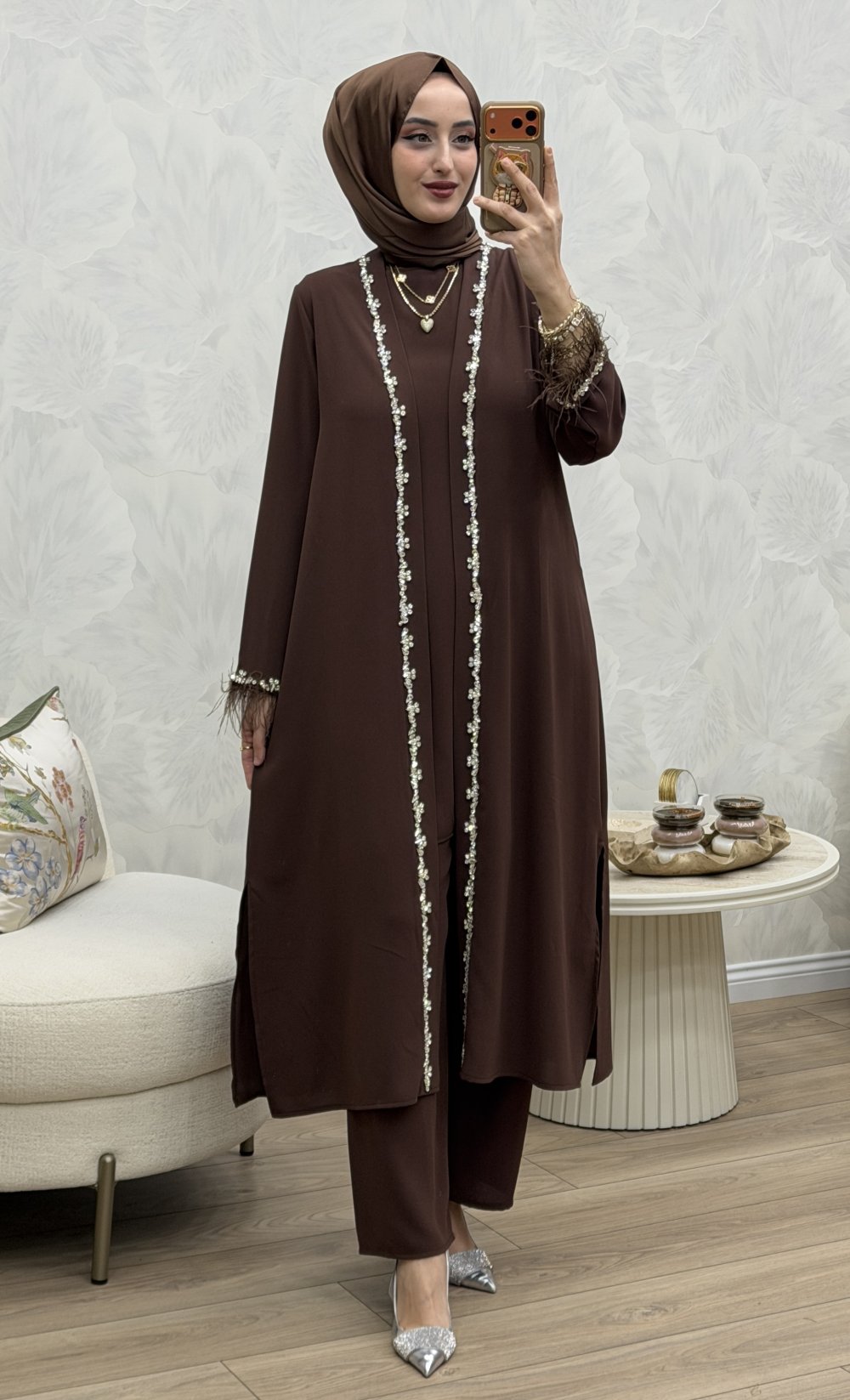 Narin 3 lü Takım,hem iş hem de günlük hayatınızda rahatlıkla tercih edebileceğiniz çok yönlü bir parçadır. Şıklığı konforla buluşturan bu tasarım, sezonun en gözde modellerinden biri olacak