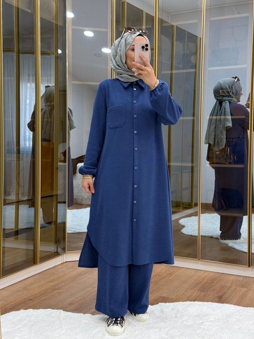 Örme kumaş maksi boy takım İndigo