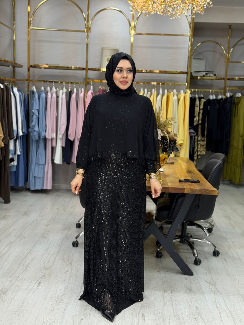 Kumaşı pul payettir. Pelerini birleşiktir, çıkmaz. İçi astarlıdır. Arkası