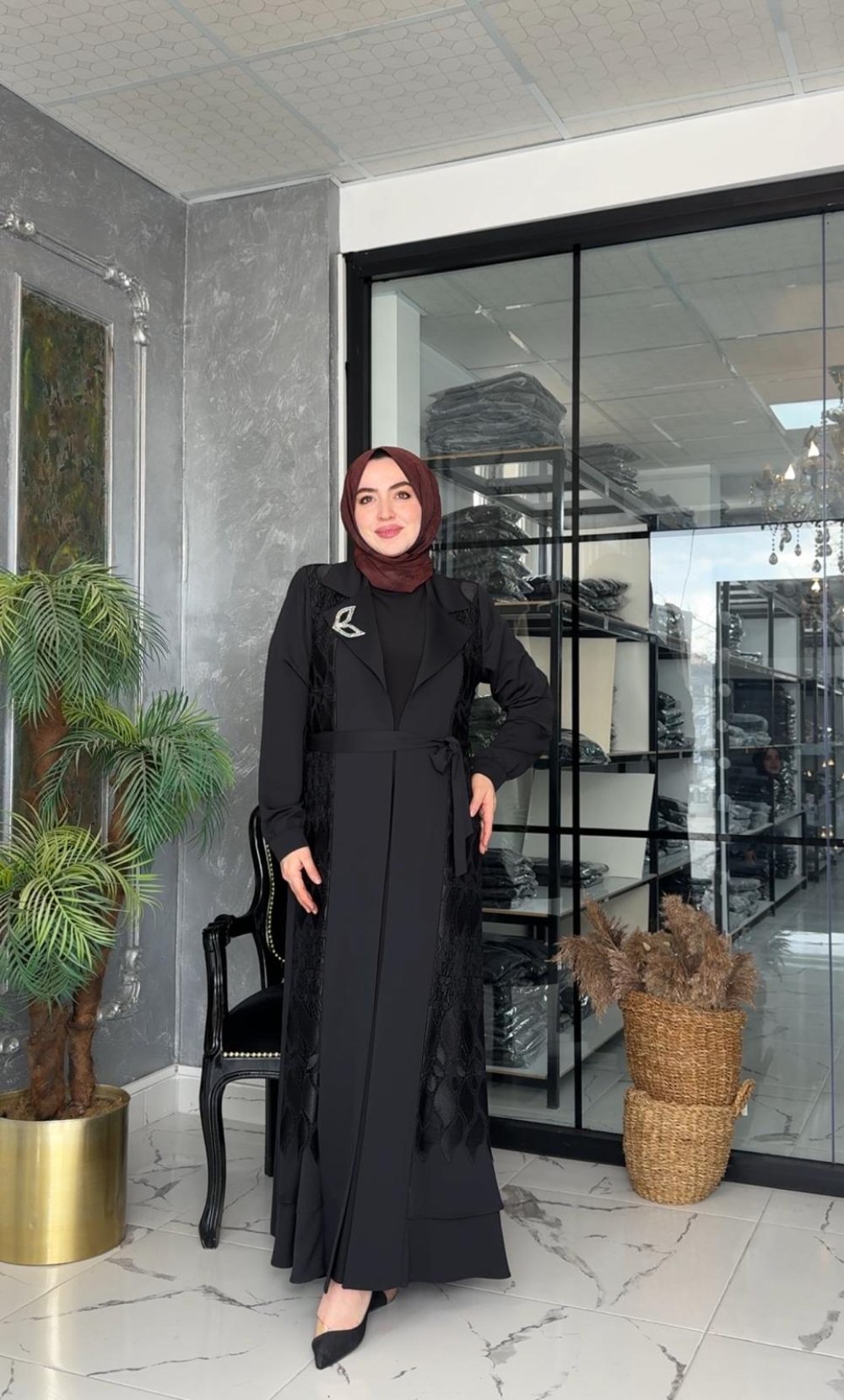 İç ürün kumaşı sandy, dış ürün kumaşı kreptir. İçlik uzun kolludur.