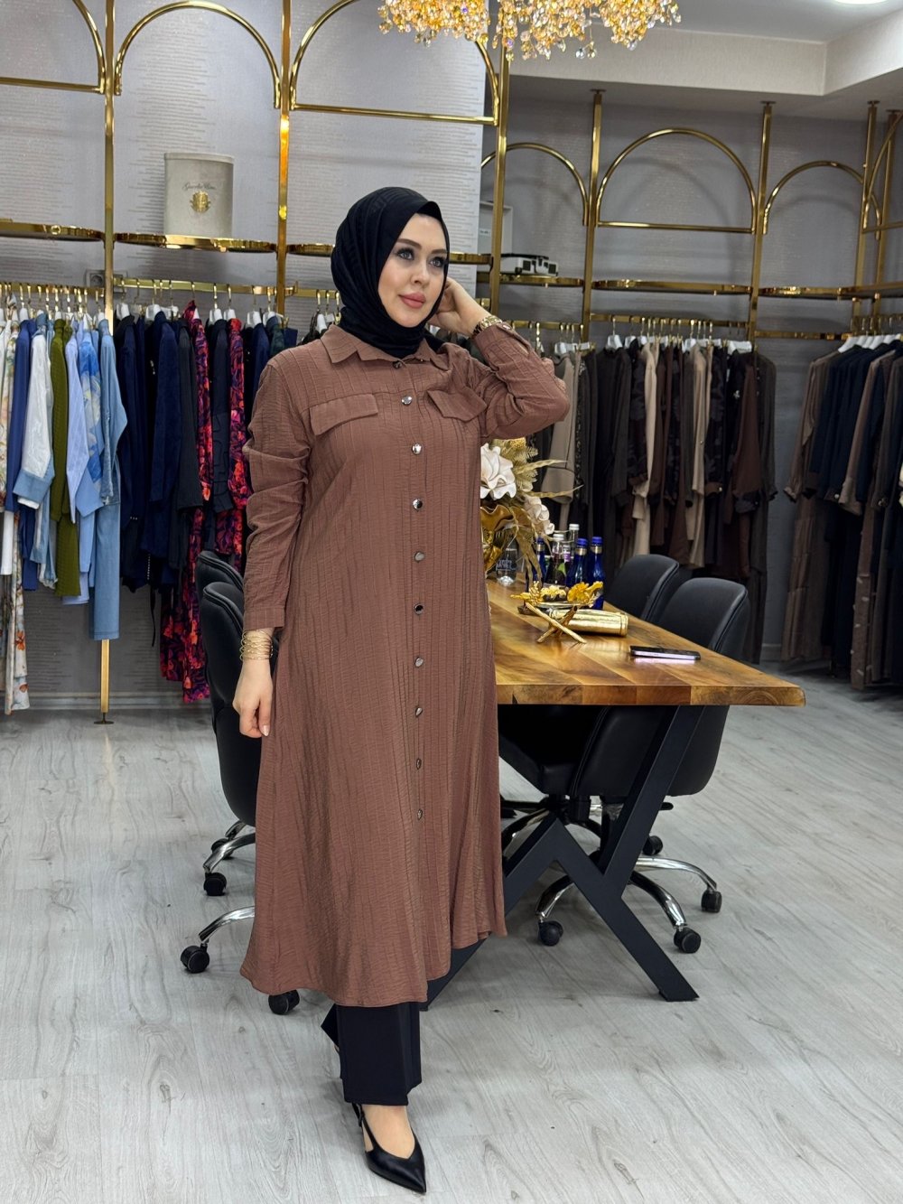 Kumaşı . Cep kapak detayı vardır. Cepleri yoktur. Önü düğmelidir.