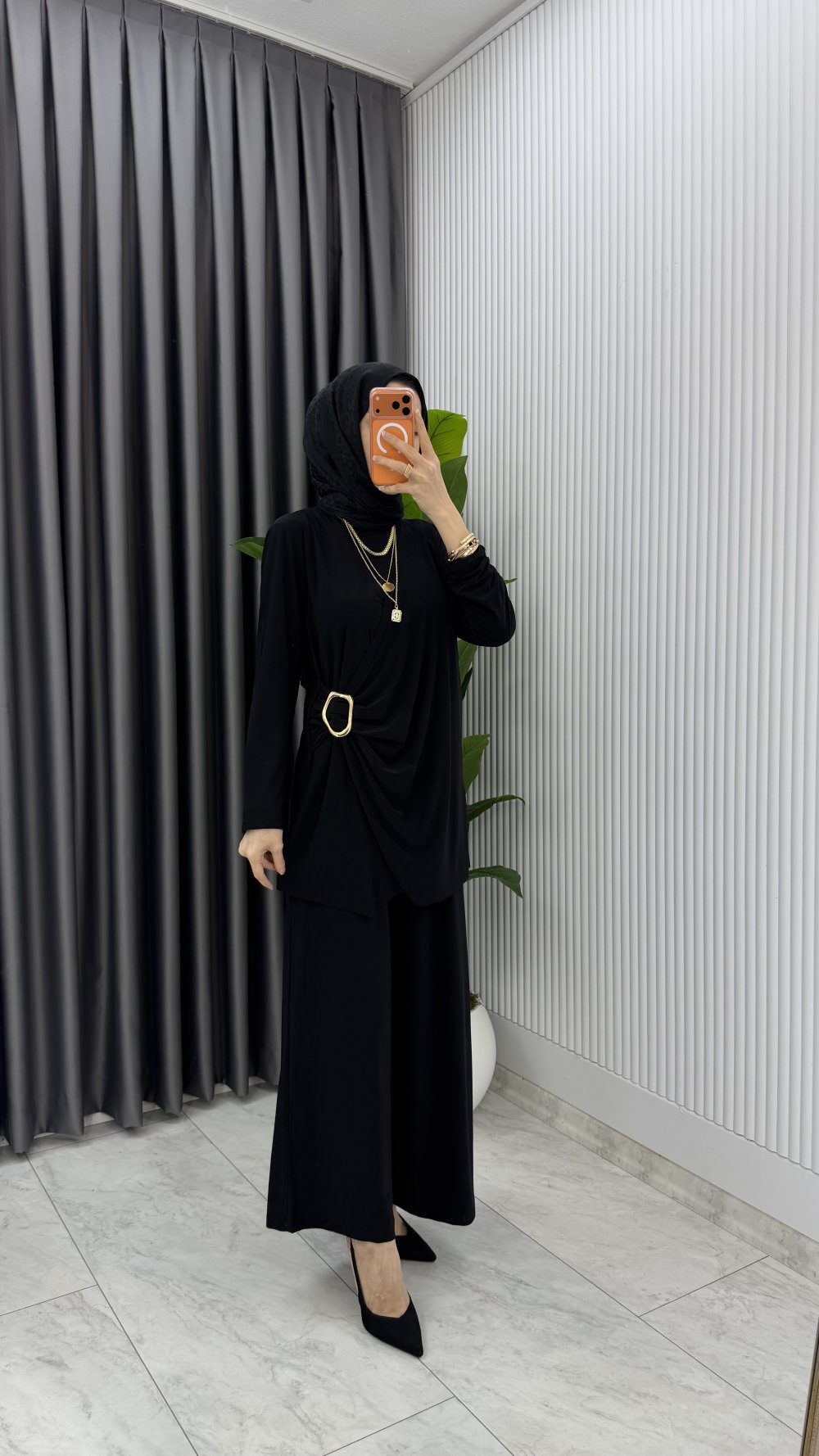 Siyah Figen Pantolon Takım Tesettür Giyim