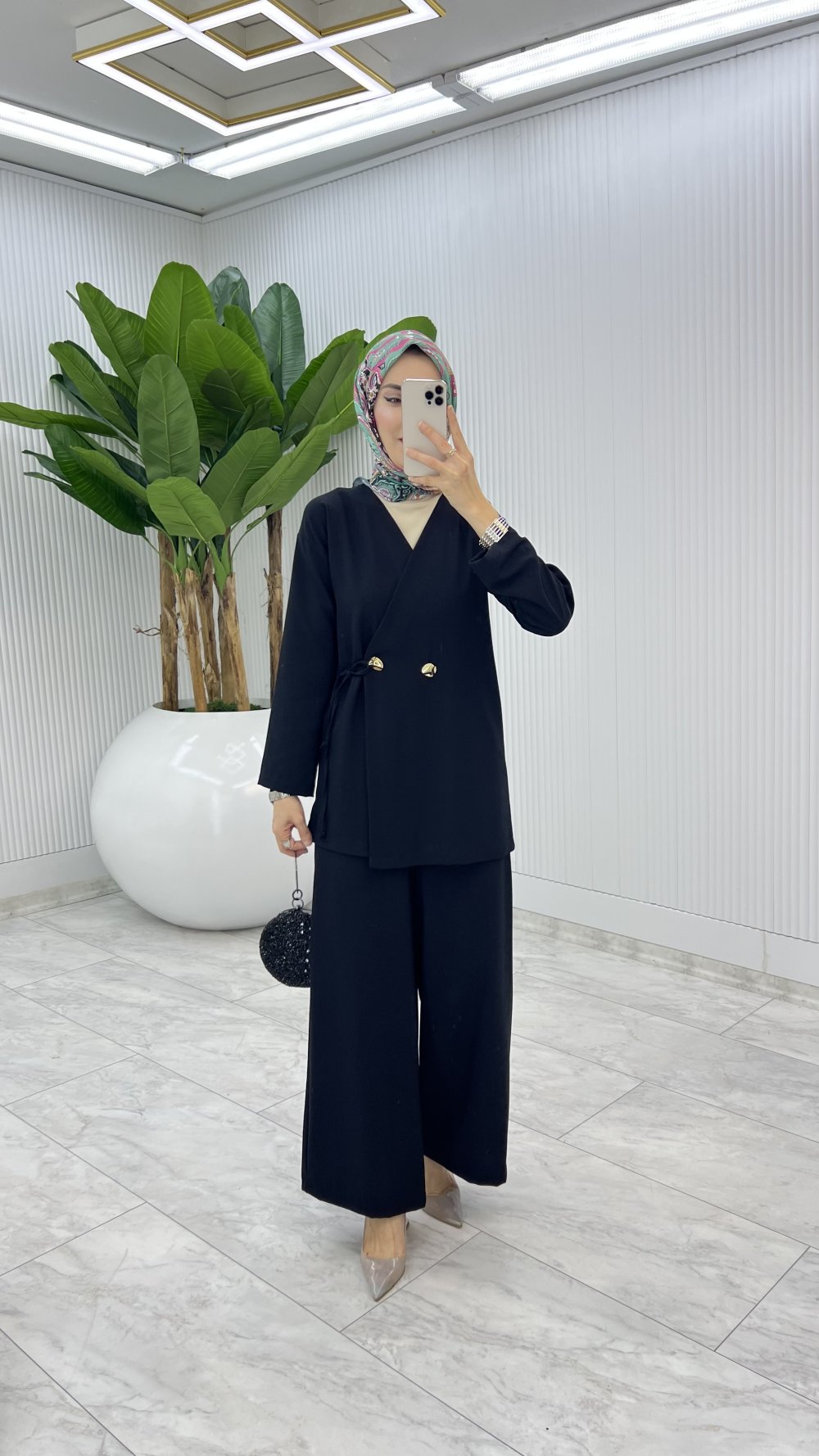 Siyah Güler Pantolonlu Takım Tesettür Giyim