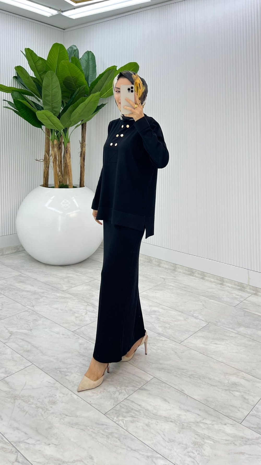 Tunik ön kısımda gold aspirin düğme detaylıdır