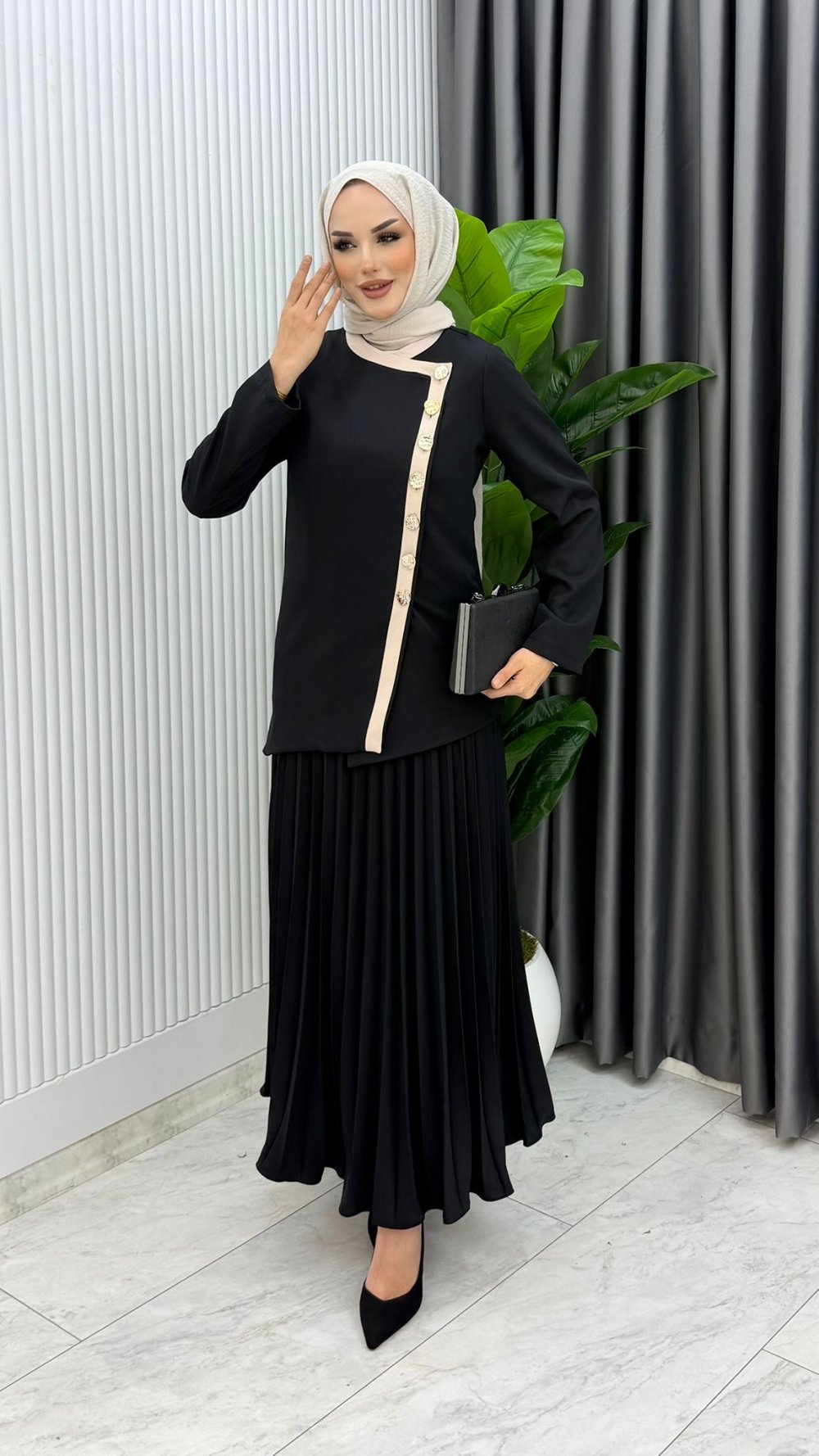 Siyah Rabia Etek Takım Tesettür Giyim